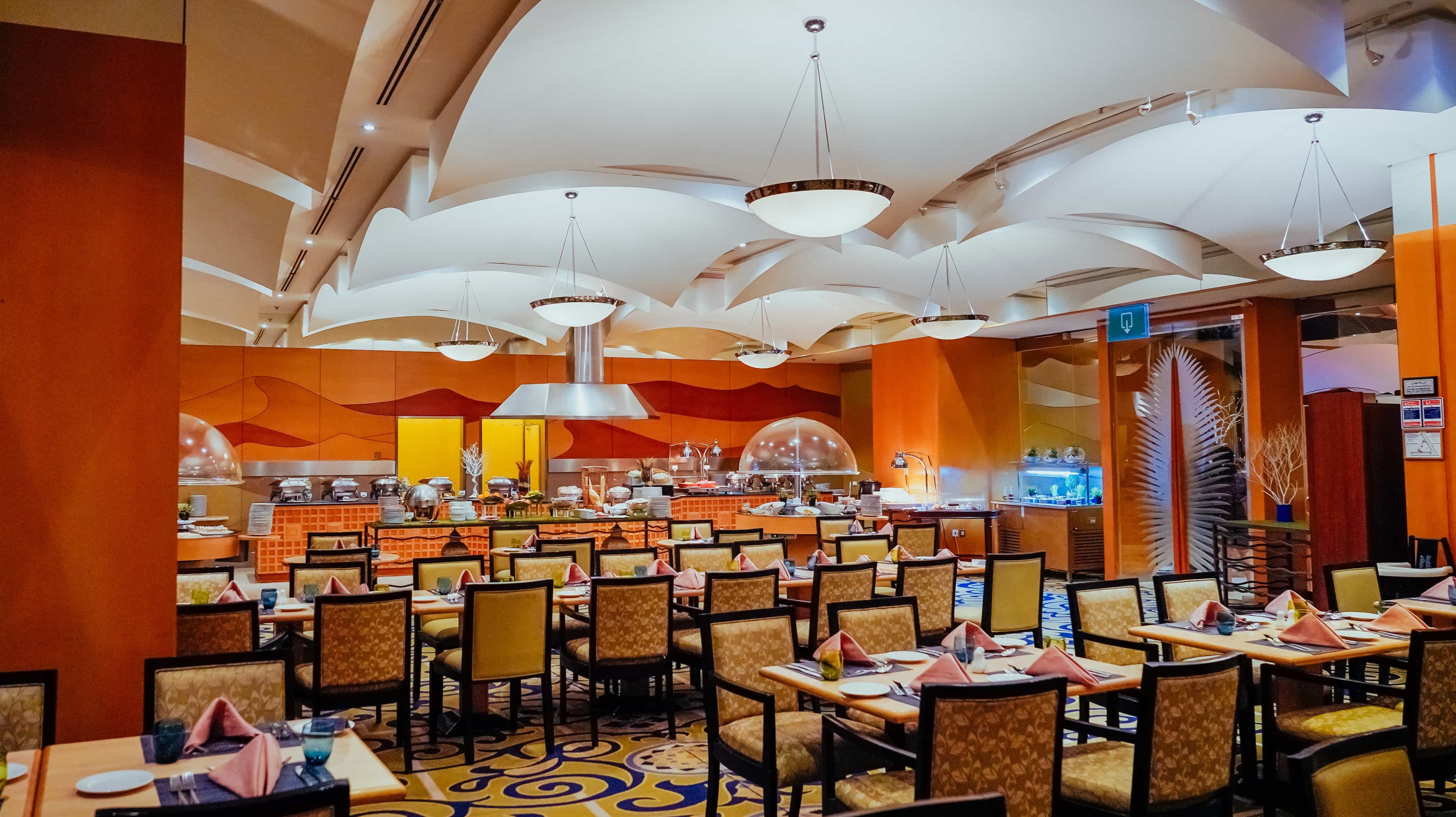 مطعم على حمام السباحة مع قائمة الطعام حسب الطلب خلال ايام الاسبوع وبوفيه مفتوح في نهاية الاسبوع.