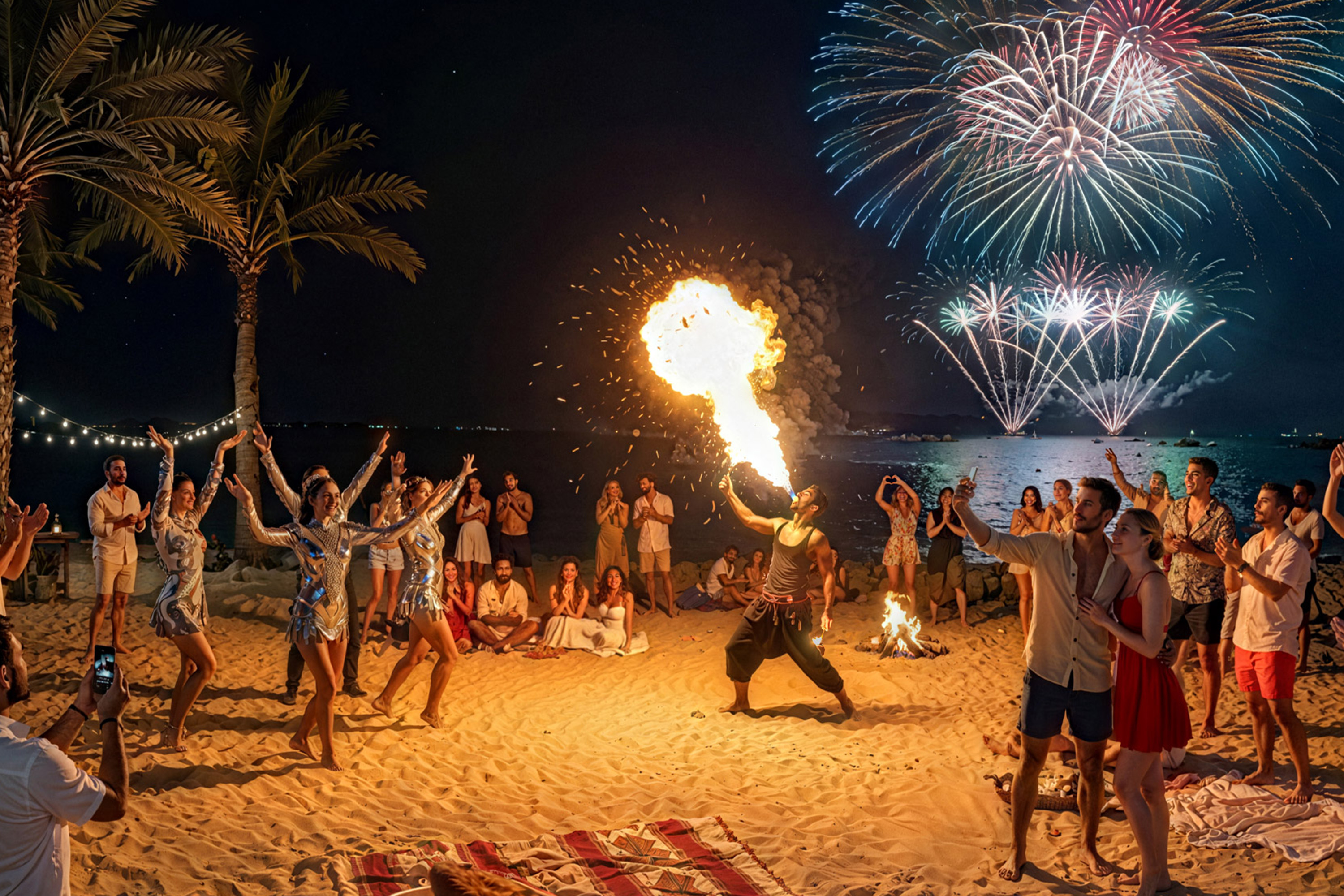 Marsana NYE brings a lively beachfront experience filled with music, movement and shared moments. Enjoy live entertainment throughout the evening, including an international DJ, fire dancers and dance performances that keep the energy flowing.