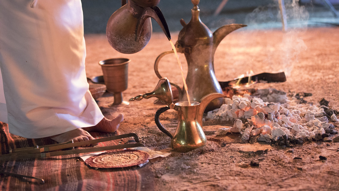 Arabic coffee, or gahwa in Emirati Arabic, has been a symbol of hospitality for centuries. Serving it to guests shows warmth and generosity, a gesture deeply rooted in Emirati culture. In the past, Bedouins brewed gahwa over open fires, blending beans with cardamom and saffron, and serving it in tiny handleless cups. Today, you’ll still find the dallah (coffee pot) at the centre of every gathering, often placed beside the majlis fire.