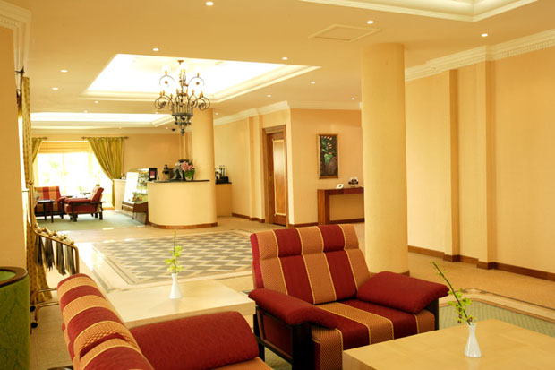 Enjoy a tropical refreshment and relax on the Al Manzil terrace at the Al Raha Beach Hotel.