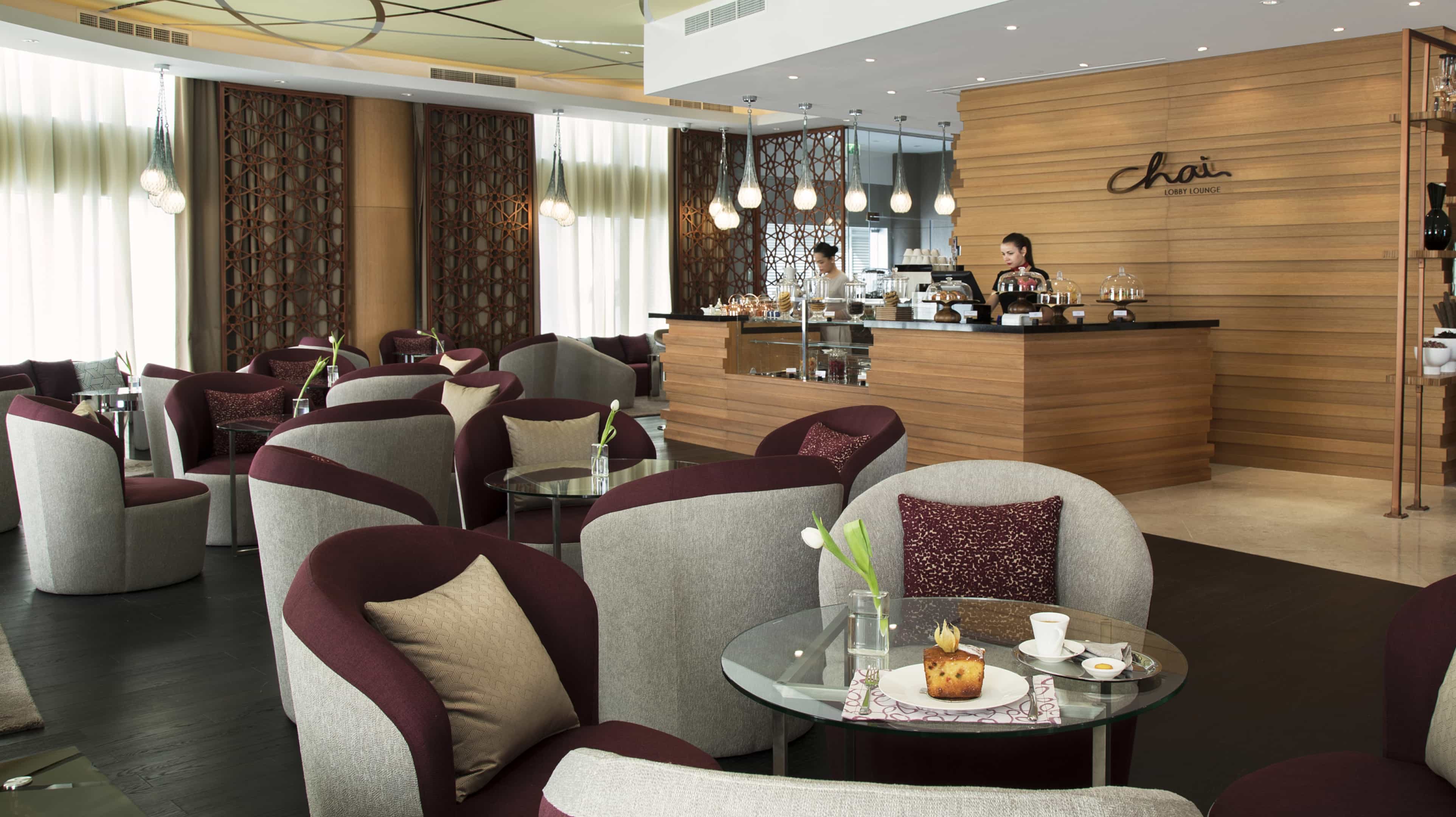 The stylish Chai Lobby Lounge at Pearl Rotana Capital Centre, Abu Dhabi features a warm colour palette accentuated by softwood decor that pulls visitors in to relax and have a short break.