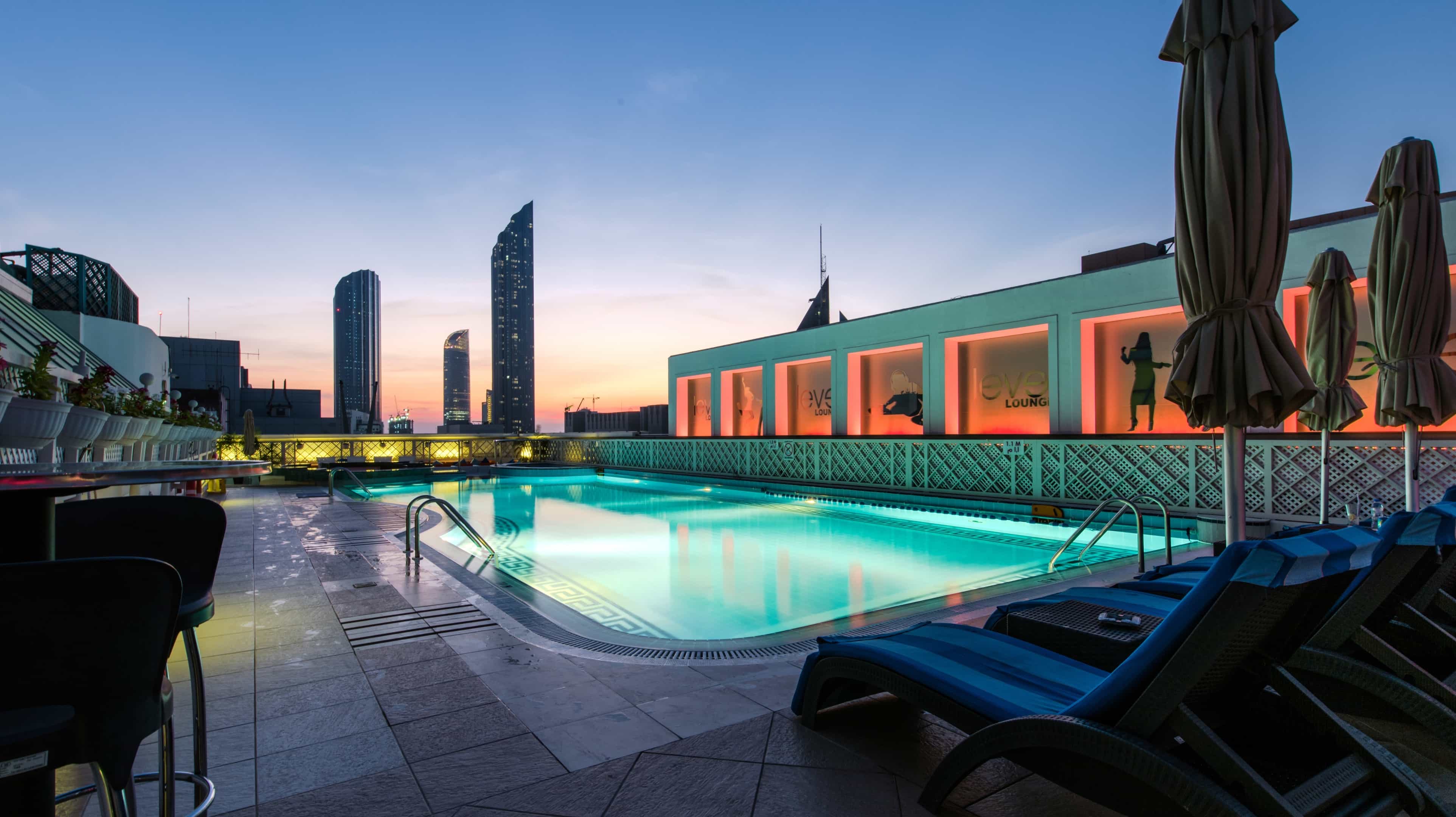 מסעדת Spaccanapoli מגישה ממיטב המטבח האיטלקי האותנטי, כולל מנת הדגל: פיצה באורך מטר עשויה בתנור עצים, ואילו מסעדת Cho Gao מציעה חוויית ארוחה אסייתית מודרנית ייחודית – המסעדה, בר וטרקלין היחידים באבו דאבי שהם ללא עישון. בבאר האגדי Heroes Bar תמצאו מוזיקה חיה, די ג'יי ושפע מסכים רחבים עבור כל חובבי הספורט. מסעדת Garden Restaurant מציעה בכל יום מזנון סביב נושא אחר. המסעדה מציעה בילוי לילי מהטובים ביותר באבו דאבי בטרקלין Level Lounge, באר על גג המלון באווירה שלווה, עם די ג'ייז בינלאומיים וקוקטיילים מעוצבים. הבריכה הארוכה על גג המלון מציעה מראות נוף לעבר קו הרקיע והזדמנות לאימון ספורט או למנוחה. מתקנים נוספים כוללים מרכז כושר מצויד היטב, שירותי עיסוי, שיעורי כושר כמו זומבה, סאונה וסאונת אדים וכן ג'קוזי אשר משקיף לעבר העיר.
