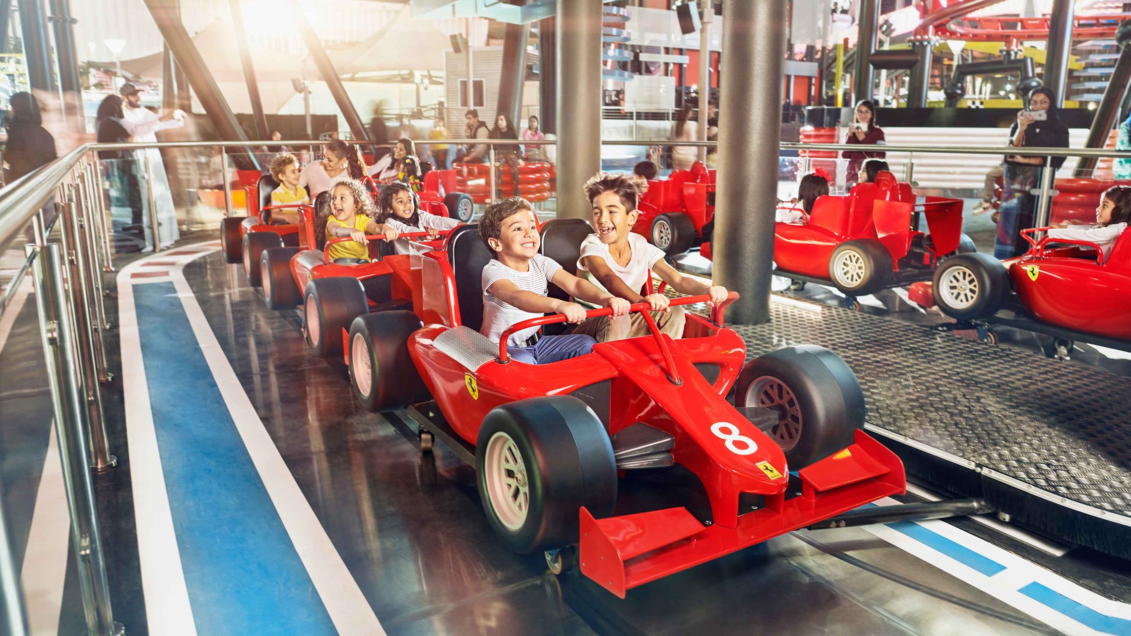 Il celebre Ferrari World Abu Dhabi è una delle principali attrazioni di Yas Island. Questo parco divertimenti, con le sue montagne russe da record, vi farà vivere un’esperienza elettrizzante e totalizzante. Insieme ai bambini, potete partire con un inizio soft saltando su alcune delle 40 giostre e attrazioni. In alternativa, provate subito il brivido di Formula Rossa, le montagne russe più veloci al mondo. Ogni giostra ha dei limiti di altezza, per cui è sempre bene verificarli prima sul sito ufficiale del parco a tema.